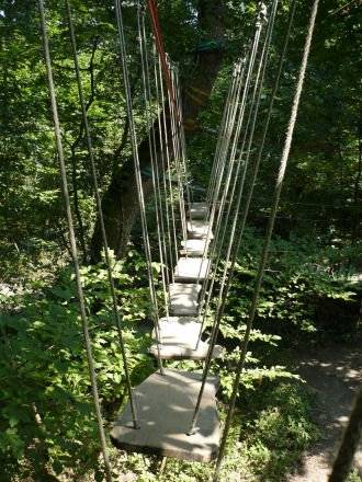À 25 minutes du Mas des 3 Châteaux, le parc accrobranche Le Lac aux Branches, situé à Laromet, offre une expérience en plein air dans un cadre naturel exceptionnel, au bord d’un lac paisible. Ce parc est idéal pour une sortie familiale ou entre amis, avec des parcours adaptés à tous les âges, dès 3 ans, et une belle diversité d’ateliers dans les arbres : tyroliennes, filets, passerelles et ponts suspendus.